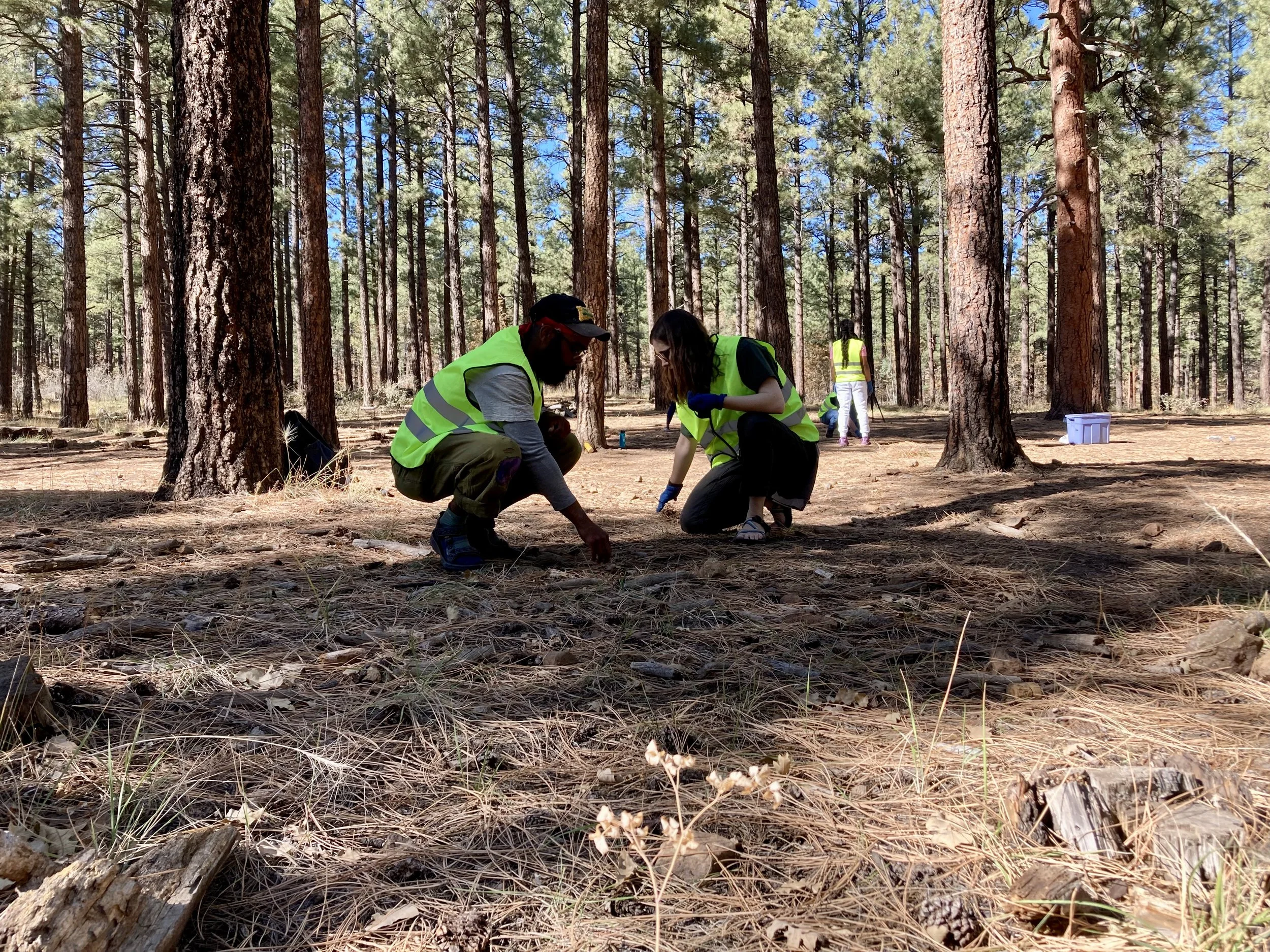 chauncey and noah arrive to a bustling college town full of halloween festivities. on saturday morning, they convene at thorpe park to co-host a clean-up event with the Clean Flagstaff Project. around 20 volunteers attend, including a few friends who make the trip up from phoenix in the valley. we focus our attention on the disc golf course, which was once an open camping site, and is now littered with old bits of broken glass. together we clean up over 58 pounds of glass. afterward, we linger in the perfect fall weather for a debrief circle and cookout.